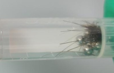 2)50Hz频率研磨360s后,毛发呈毛发呈短片段状,部分长度在2-5mm(见图6)